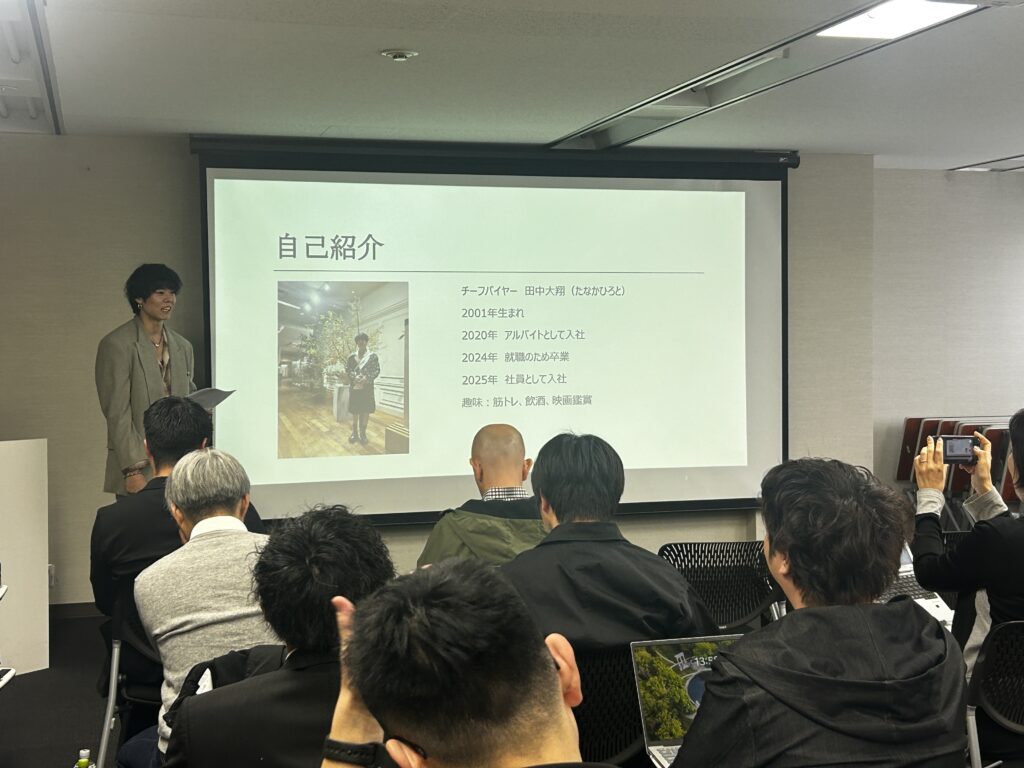 アルバイトから今年、社員になった1年目でのご登壇。テーマは、「スーツを起点にした潜在需要の発掘とメンズ強化」でした。