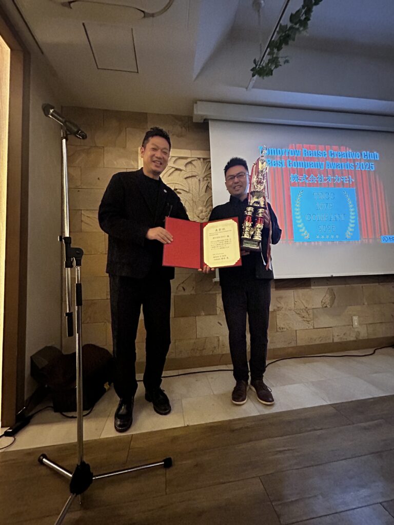 ↓今年の年間MVP企業は、9月で視察ツアーにも本当にご協力いただいた株式会社オカモトの照本様。(好事例に感謝で賞も同時受賞)