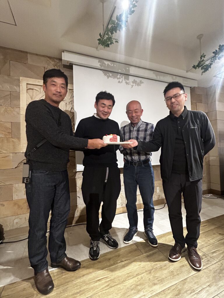 今回誕生日の近かった株式会社都元の武田社長、株式会社買取王国の長谷川様、株式会社アール・ラウンドの寺尾社長、株式会社オカモトの照本様。