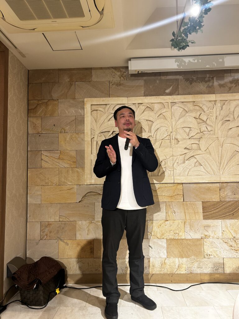 ↓急なお願いでしたが、快く締めの挨拶をしていただいた、株式会社まるげんの中村様。